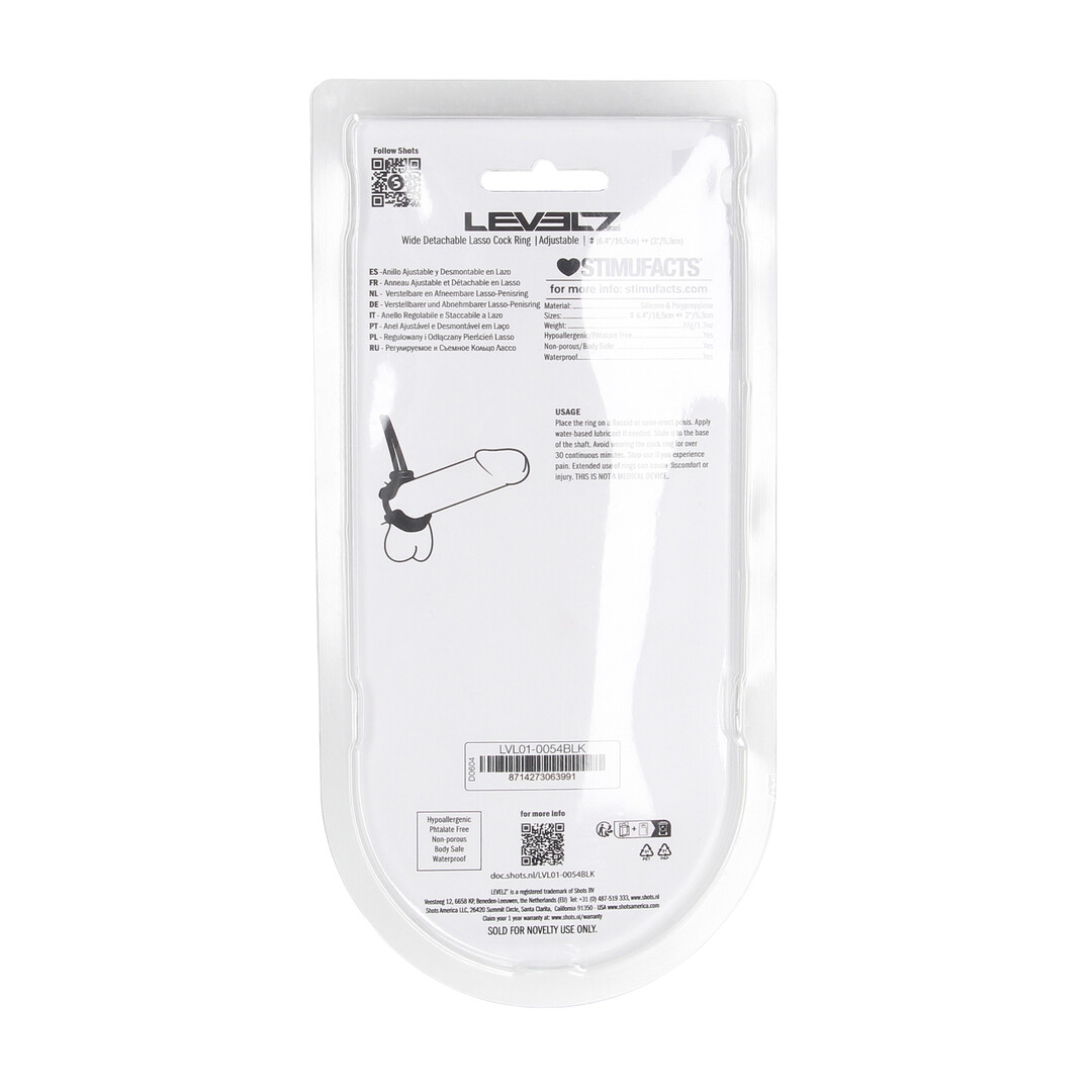Stel je perfecte pasvorm in met deze verstelbare cockring uit de LEVELZ-collectie. Ontworpen met een flexibele siliconen lus en een vergrendelbare schuif, biedt deze niet-vibrerende ring aangepaste spanning en controle, ideaal voor beginners of degenen die graag opties hebben. Gemaakt van lichaamsveilige materialen en verpakt in een stijlvolle clamshell, is het een gemakkelijke, veelzijdige aanvulling op elke collectie.