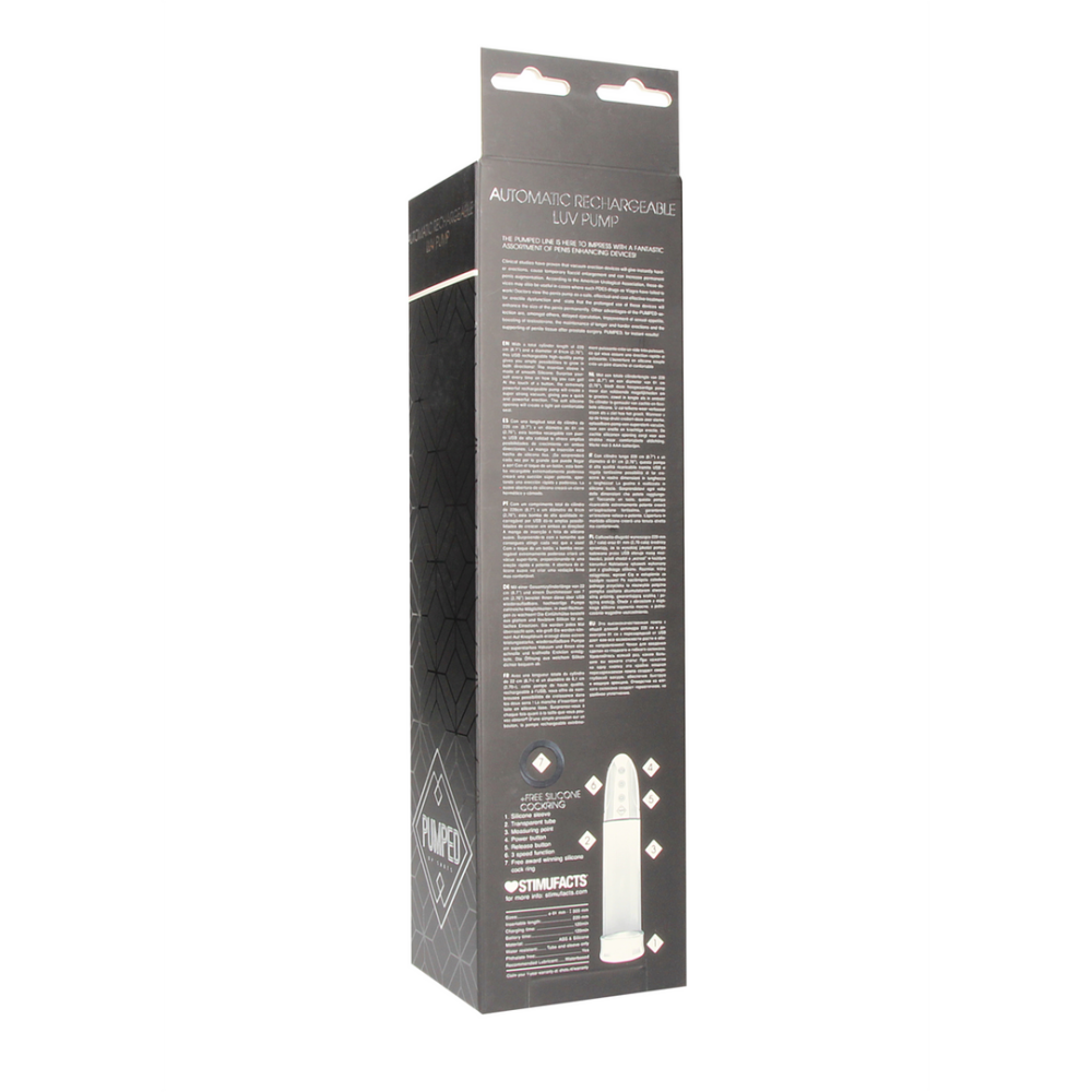 With a total cylinder length of 20 cm (7.8) and a diameter of 6 cm (2.36), this USB rechargeable high-quality pump gives you ample possibilities to grow in both directions! The insertion sleeve is made of smooth Silicone. Surprise yourself every time on how big you can get! At the touch of a button, the extremely powerful rechargeable pump will create a super strong vacuum, giving you a quick and powerful erection. The soft silicone opening will create a tight yet comfortable seal. WARNING: Please read product manual before using any type of vacuum pump orconstriction ring. Stop using the devices immediately if you experience any pain or discomfort.