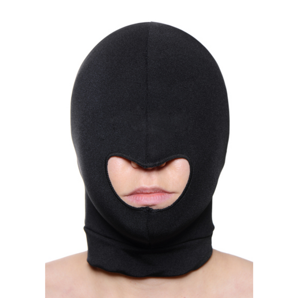 Deze sluwe vermomming is ontworpen om comfortabel te zijn, zich volledig over het hoofd uit te strekken en hun zicht te verduisteren. Deze lichtgewicht capuchon heeft een opening voor de mond en belemmert de ademhaling niet, maar beperkt het gezichtsvermogen. De blootgestelde mond laat allerlei ondeugende mogelijkheden open. Perfect voor een berekend rollenspel, of het inbrengen van een mondknevel of ander opwindend accessoire. Het is jouw domein…