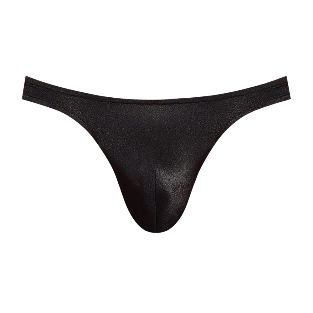 Van de Satin Spandex-collectie van Male Power, deze stijl omvat: Een satijnen bong thong met een comfortabele pasvorm, klassieke thong achterkant en ton-sur-ton pluche elastische afwerking.