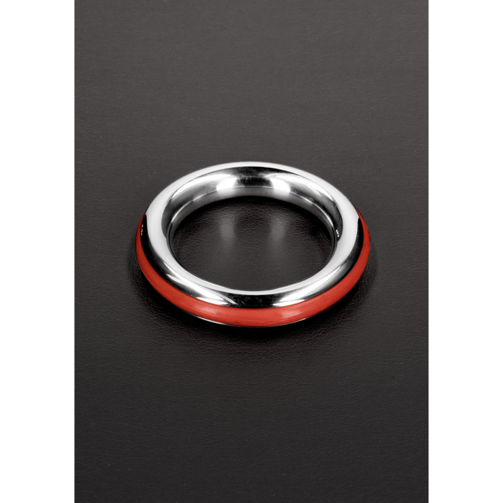 Made from Stainless Steel, this cockring is designed with comfort and style in mind The Cockring has Inlay Silicon Rubber Rings. In the colors: Red, Black, Blue and Yellow. This ring will help prolong your erection and add some flare at the same time.