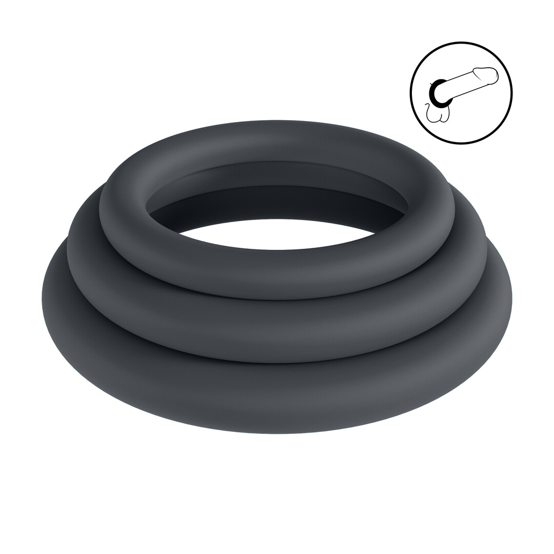 Classic Silicone Cockring Set van 3 – L/XL/XXL – Zwart