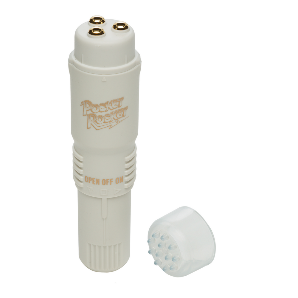 De Original Pocket Rocket is gewoon de krachtigste en betrouwbaarste stimulator ter wereld! Ontworpen om de clitoris en andere sensuele plekken te stimuleren, is dit speeltje gemaakt voor uitwendig gebruik, niet om in te brengen. Drie metalen ballen zorgen voor een krachtige vibrerende ervaring, terwijl de onderste draaiknop de functie en de snelheid van de stimulator regelt. Maak je klaar voor de explosie! Niet-ftalaat, lichaamsveilig ABS-kunststof. Ivoor.