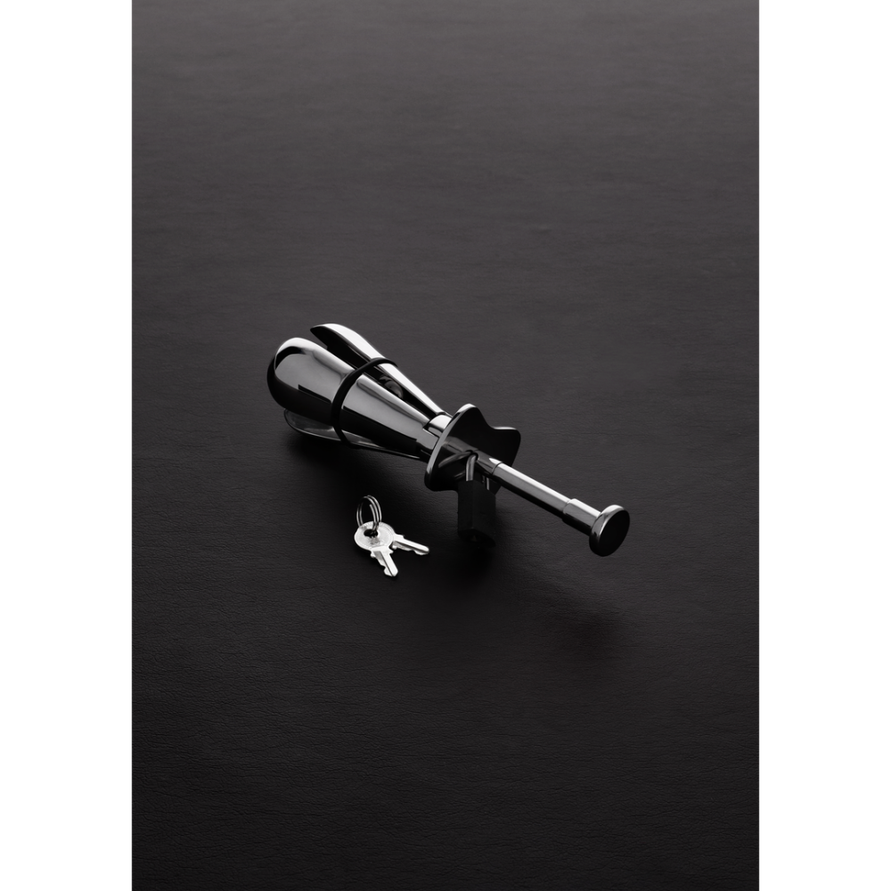 Deze vergrendelbare butt plug is een premium anaalspeeltje gemaakt voor extreem veel plezier. Het is speciaal ontworpen om op de juiste plekken te komen en een unieke sensatie te geven. Drie scharnierende stalen secties kunnen uit bloeien en de borgpen houdt de plug goed op zijn plaats. De gladde roestvrij stalen heeft een luxueus gewicht en gevoel voor intense sensatie en opwindend temperatuurspel.