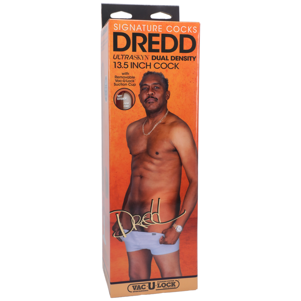 Dredd is klaar om je te vullen. Deze Signature Cock is rechtstreeks gemodelleerd naar zijn enorme lid in levensechte dual density ULTRASKYN. Dit materiaal legt elk detail perfect vast, imiteert het unieke gevoel van echte huid en warmt op tot lichaamstemperatuur bij gebruik. Laat je pornoster fantasie vanavond werkelijkheid worden!