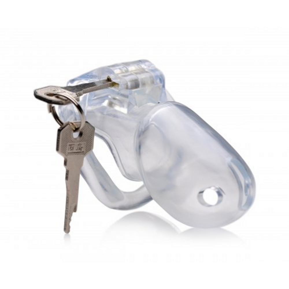 Beperk je sub in deze duidelijke chastity gevangenis! De Clear Captor vergrendelt de seksualiteit van je partner in het volle zicht, waardoor ze zichzelf niet kunnen bevredigen totdat jij ze bevrijdt. Gemaakt van vergevingsgezinde materialen voor langdurig comfort, evenals een genereus aantal ventilatiegaten en een doorlatende punt. De Clear Captor bevat 4 balringen van verschillende maten om bij alle soorten balzakken te passen! Of je partner nu hoog en strak of los en groot is, kies uit de kleinste ring van 1,7 inch tot de grootste van 2,2 inch om hun ballen te vergrendelen tot nader order. Het duurzame ABS-kunststof dat voor de Clear Captor is gebruikt, is glad en vergevingsgezind, perfect voor een hele dag chastity spel. De kooi zelf heeft veel ventilatie en een doorlatende punt voor de noodzakelijkheden, maar blijft stevig en rigide voor een gevoel van veiligheid en vertrouwen voor de drager. Het veilige vergrendelmechanisme beveiligt deze kooi zonder vervelende sloten die in de weg zitten! De Clear Captor wordt geleverd met twee sleutels, één voor jou en de andere voor je sub in geval van nood. Afmetingen van de kooi: Totale lengte 3,9 inch, breedste diameter 1,5 inch Binnenste diameter van de ringen: Klein 1,7 inch, Medium 1,8 inch, Groot 2 inch, X-groot 2,2 inch Materialen: ABS-kunststof Kleur: Transparant