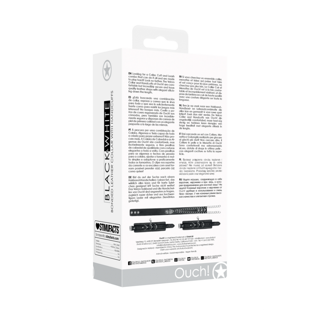 Ben je op zoek naar een Halsband-, Handboei- en Leibandcombinatie die alles kan en gemaakt is voor ruwe spelletjes? Zoek dan niet verder. De Leather Collar and Handcuffs van Ouch! zijn ongelooflijk comfortabel, maar heel erg stevig en hebben leren riempjes van hoge kwaliteit met elegante stiksels in de lengte. Met riempjes voor de handboeien en drukknopen voor de halsband kun je de grootte heel gemakkelijk aanpassen en zijn ze geschikt voor bijna iedere maat. Door de clip op de kettinghouder en de D-ring connectoren kun je jouw geliefde op iedere manier in bedwang houden!