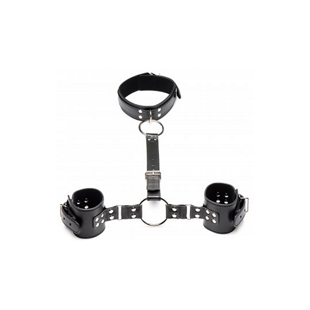 Bevestig je onderdanige met deze Neck to Wrist handboeien! Als een halsband te gebruiken, is de zachte binnenvoering vriendelijk voor hun huid, zodat je de halsband en polsboeien zo strak kunt aantrekken als comfortabel is. Het vegan-vriendelijke PU-leer is gemakkelijk schoon te maken en behoudt toch de sexy, klassieke leren uitstraling! De grote O-ringen zijn gemaakt van sterk, nikkelvrij metaal en kunnen aan andere bondage-items worden bevestigd. Gebruik de gesp om de perfecte pasvorm aan te passen. Haak je vingers om de O-ringen en trek je geliefde naar je toe. Speel met het bevestigen van de O-ringen aan verschillende ankerpunten of plaats hun handen ver weg van hen. Hun polsen zullen geboeid en beperkt zijn, de middelste band is bevestigd aan hun gekraagde nek. Houd de middelste band kort zodat hun handen net buiten bereik van hun geslachtsdelen blijven, zodat ze zichzelf niet kunnen bevredigen, en geniet van het plagen en spelen met hen. Beperk hun beweging nog verder door de band naar achteren te brengen en hun geboeide polsen achter hun rug te plaatsen. Nadat je klaar bent met spelen, gebruik je een speelgoedreiniger en spuit je de banden en het metaal schoon, en veeg je het schoon met een zachte doek. Bewaar het op een koele, donkere plaats, weg van scherpe of ruwe materialen. Afmetingen: Breedte halsband: 3,8 cm, halsband past van 31,8 cm tot 42 cm omtrek, Breedte boeien: 6,4 cm, boeien passen van 19 cm tot 25,4 cm omtrek, Achterband past van 26,7 cm tot 42 cm in lengte Materialen: PU-leer, metaal Kleur: Zwart, Metaal Belangrijkste Kenmerken: PU Leer: Dit vegan-vriendelijke leer is gemakkelijk schoon te maken en heeft toch de klassieke, sexy leren stijl! Grote O-Ringen: Word verbonden met dit ontwerp met O-ringen die gemakkelijk aan andere bondage-items kunnen worden bevestigd. Gesp en Verstelbaar: De halsband en polsboeien sluiten strak en worden vastgemaakt, zodat je de perfecte pasvorm voor comfort en beperking kunt vinden. De polsboeien kunnen worden losgemaakt en opnieuw bevestigd, zowel voor als achter, voor meerdere beperkende posities. Zachte Binnenvoering: Geniet van het gevoel hiervan tegen je huid. De zachte binnenvoering maakt het dragen hiervan strak tegen je lichaam comfortabel en sexy!