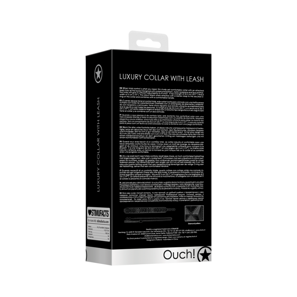 Als u op zoek bent naar totale controle, biedt deze stoere, en toch comfortabel halsketting met bijgevoegde riem, alles wat u nodig heeft. Ontworpen met een ruitpatroon in stijlvol neopreen en kunstleer, zorgen vijf gaatjes voor voldoende verstelmogelijkheden zodat ze vrijwel iedereen passen. De halsketting heeft een lengte van 52,5 cm en een breedte van 5 cm. De robuuste zwarte ketting wordt met een karabijnsluiting bevestigd aan de veilige O-ring aan de halsketting, samen met een comfortabel handvat.