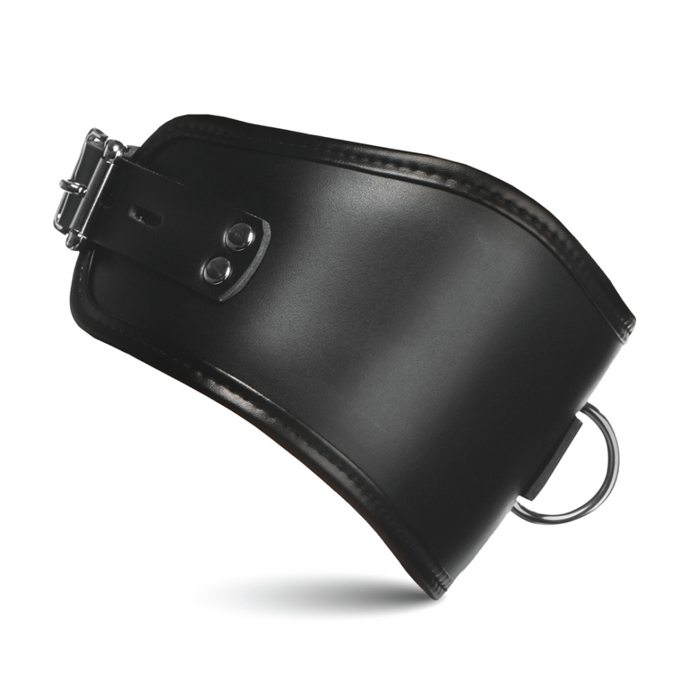The Hard Stance Padded Locking Posture Collar is your go-to accessory for obedient submissives and controlled play! The adjustable and lockable straps let you achieve a snug, reliable fit, while a layer of soft padding offers enhanced comfort for prolonged wear. Vegan leather construction gives it an authentic look and makes maintenance a breeze. Use the D-ring at the front to attach a leash or other accessories, expanding the possibilities for your play. Perfect for those looking for a mix of style, comfort, and functionality. You won’t be able to tilt your head, tuck your chin, or look away when wearing this snug collar! You’ll stay an obedient and attentive submissive to your Master, and the comfort of this collar will only make you proud to be seen as claimed by such a Dominant partner. The clink of metal at the back reminds you that you’re locked up, but you don’t mind at all. You’re in for a night of naughtiness and service. Measurements: Adjusts from 14.5 inches to 19.5 inches circumference.