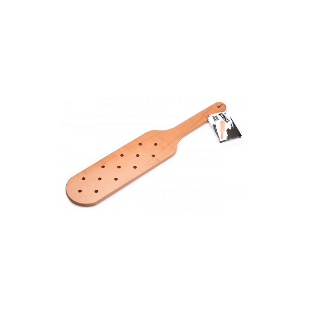 Rechtstreeks uit je nachtmerries – of fantasieën – deze houten peddel is een klassieker voor lijfstraffen! Gemaakt van massief strandhout, het is licht in de hand van de bestraffer, maar hard voor het vlees van de gestrafte! Met gaten die lucht doorlaten voor een meer aerodynamische zwaai, is deze peddel niet voor bangeriken. Je zult in staat zijn om met meer snelheid en kracht vlees te raken, waardoor je hardere slagen en pijnlijker genot krijgt. Wie is er slecht geweest?