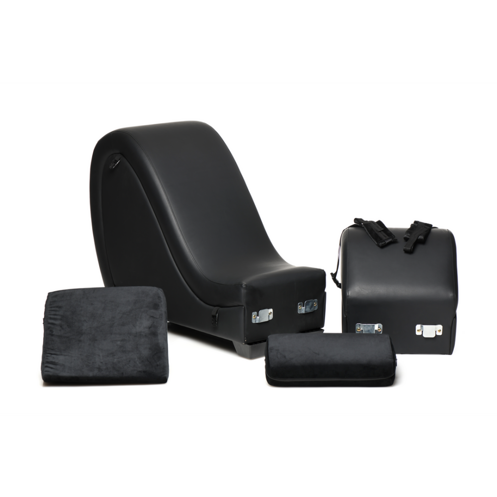 Wil je je eigen sekstempel thuis, maar heb je niet genoeg vloeroppervlak? Deze kinky sex chaise lounge kan in twee delen worden opgebroken, zodat je het kunt opbergen wanneer het niet in gebruik is! Stop het weg in een kamer, kast of opslagruimte. Breek het af om het gemakkelijk van de ene naar de andere plek te vervoeren! Maak je nooit meer zorgen over het passen van die bank door de smalle gang, trap of deur! Ontkoppel gewoon de metalen beugels en neem het stuk voor stuk mee! Gemaakt van duurzaam hout en metaal, is het bedekt met vegan-vriendelijk PU-leer. Dit faux leer is gemakkelijk schoon te maken en is glad en naadloos. De bank is comfortabel en ergonomisch ontworpen, zodat je meer posities kunt verkennen dan ooit tevoren! Bij de bank worden twee Love Pillows geleverd die als steunen voor je hoofd of borst dienen en comfortabel zitten of knielen mogelijk maken wanneer ze in de kromming van de bank worden geplaatst. Beperk je geliefde aan de bank met de zachte fleece pols- en enkelboeien! Ze zijn elk verbonden via nylon banden met de basis van de bank en zijn gemakkelijk aan te passen en te verwijderen. Montage is eenvoudig volg gewoon de bijgeleverde instructies. Maak de bank schoon na een sexy scène met warm water en milde zeep. Gebruik een zachte doek om het schoon te vegen. Je hebt de bank opgezet, de twee delen verbonden en het precies neergezet waar je het wilt. Er is genoeg ruimte omheen om te staan en elke soort duivelse en kinky sensatie aan je enthousiaste onderdanige geliefde te geven. Terwijl je hen uitnodigt om te beginnen met knielen, leg je het kussen onder hun knieën en hun handen op de hoofdsteun. Hun achterkant is naar jou gekeerd en je begint ze te slaan en op te warmen. Hun achterste begint roze te worden van de aandacht en je beweegt naar hun dijen. Met zwepen geniet je terwijl ze hun rug in blije euforie krommen. Je laat ze omdraaien op hun rug en beperkt hun handen en voeten met de zachte fleece restrainers. Een ball gag gaat in hun mond en je kijkt diep in hun ogen en leest de opwinding en verlangen in hen. Terwijl je begint te spelen met hun tepels, breng je tepelklemmen aan en geef je ze een zachte klap zodra ze erop zitten, je glimlacht terwijl je de gedempte kreunen hoort. Uiteindelijk heb je ze precies waar je ze wilt en klim je bovenop! Afmetingen: Totaal: 152 cm Lengte x 43 cm Breedte x 76 cm Hoogte. Bandjes passen tot 127 cm in lengte. Boeien passen van 13 cm tot 36 cm omtrek. Hoofdsteun: 47 cm Lengte x 31 cm Breedte x 10 cm Hoogte. Steunpillow: 47 cm Lengte x 51 cm Breedte x 17 cm Hoogte. Maximaal gewichtslimiet: 200 kg. Materialen: Hout, PU-leer, polyester, metaal. Kleur: Zwart. Opmerking: Lees de instructies zorgvuldig om een veilige montage te garanderen. Was met warm water en milde zeep. Houd uit de directe zon. Montage vereist een schroevendraaier (niet inbegrepen). Belangrijkste kenmerken: Afneembaar: Deze kinky bank kan worden losgekoppeld en in 2 aparte delen worden opgebroken, zodat je het gemakkelijker kunt opbergen in een kast, achterkamer of opslagruimte. Het maakt het ook gemakkelijker om het naar evenementen te vervoeren! De twee uiteinden van de bank worden losgekoppeld via de beugels die aan elkaar haken. Ergonomische Seks!: Deze bank wordt geleverd met twee kussens, één voor het hoofd en de andere om op te knielen of zitten. Combineer deze steunen met de vorm van de bank voor een geweldige upgrade in comfortabele, ergonomische seks! Voeg meer posities toe aan je seksleven zonder enige moeite! Zachte Beperkingen: Bij de bank worden een paar pols- en enkelbeperkingen geleverd! Deze zachte fleece beperkingen zijn gemakkelijk te gebruiken, eenvoudig aan te passen en bevestigen aan nylon banden die aan de basis van de bank zijn bevestigd! PU-leer: Dit vegan-vriendelijke, gladde faux leer is gemakkelijk schoon te maken. Duurzaam en Comfortabel: Deze stevige bank van hout en metaal is bedekt met kussens en heeft ondersteunende kussens om je lange scènes comfortabel te maken! Het kan ook tot 200 kg aan!