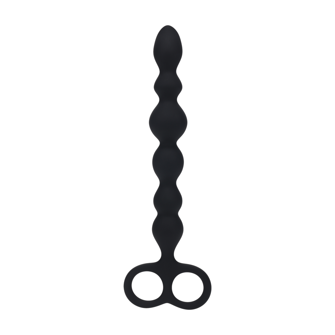 Kralen Siliconen Anale Probe met Dubbele Lus – Zwart