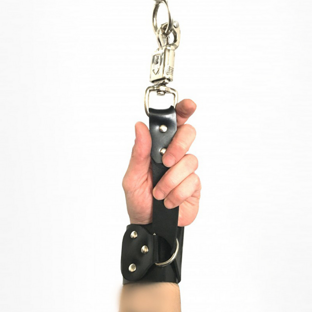 These leather handcuffs are ideal for suspension games. They are not fastened together, but are placed in a raised position. They have an adjustable diameter with an anti-panic safety snap hook. Ideal for quick and easy detachment. Made of genuine cowhide leather.
