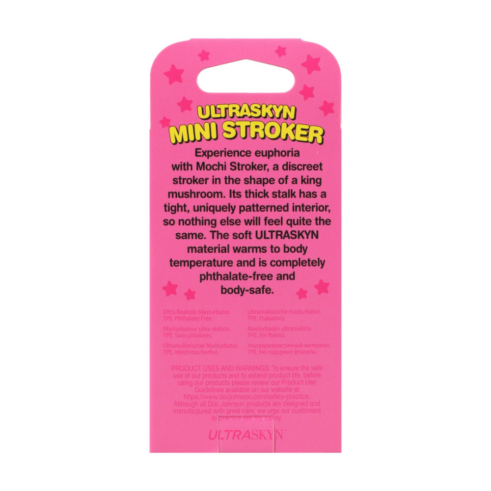 Ervaar euforie met Mochi Stroker, een discrete stroker in de vorm van een koningspaddenstoel. De dikke steel heeft een strakke, uniek gevormde binnenkant, waardoor niets anders hetzelfde aanvoelt. Het zachte ULTRASKYN-materiaal warmt op tot lichaamstemperatuur en is volledig vrij van ftalaten en veilig voor het lichaam.