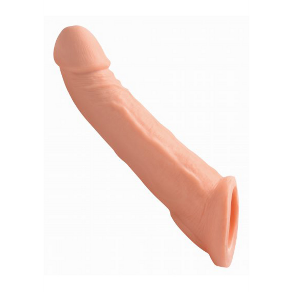 Gebeeldhouwd met ongelooflijke levensechte details, geeft deze penisverlenging je meer om mee te werken als je met een partner speelt! Vervul spannende fantasieën wanneer je je schacht in de schede en je scrotum in de riem laat glijden. Als deze verlenghuls eenmaal vastzit, heb je meer lengte en omtrek om mee te spelen. De stevige punt alleen al voegt 2 extra centimeters toe! Dit materiaal is zacht en realistisch, en compatibel met zowel siliconen als glijmiddelen op waterbasis. Reinig met milde zeep en warm water.