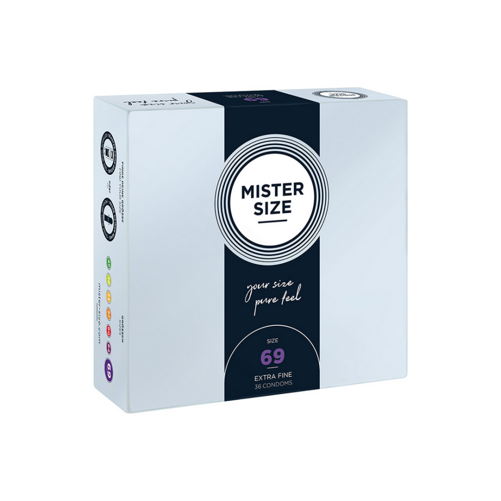Het voelt pas goed als het goed zit! Denk er eens over na: alles wat u op uw lichaam aantrekt – van handschoenen tot hoeden tot jassen – is perfect ontworpen voor uw maat. En nu is je condoom dat ook. Met een op maat gemaakt MISTER SIZE condoom voel je alles en ben je nergens bang voor! Condoommaat, perfect passende condooms – daar denken of praten we niet echt over. Heel vaak weten mannen niet echt wat hun juiste condoommaat is. Ook wordt er niet veel hulp aangeboden in de markt om mannen te informeren over hun juiste condoommaat. Het omdoen van de verkeerde condoommaat kan slippen, breken, een dof gevoel en vooral een gebrek aan plezier veroorzaken. Bovendien variëren condooms die momenteel op de markt verkrijgbaar zijn aanzienlijk in textuur, smaak en vorm. Maar ze fluctueren nauwelijks in grootte. Condoommaat wordt niet echt genoemd, misschien omdat de breedte varieert tussen 52 – 56 mm. Er zijn maar heel weinig condooms verkrijgbaar in maat 57 mm, een condoommaat die al als erg groot wordt beschouwd. Als we echter kijken naar recente onderzoeken naar penisgrootte in erectie, bleken breedten van 58 – 61 mm eigenlijk de gemiddelde maten te zijn. MISTER SIZE -7 condoommaten voor een perfecte pasvorm! Meer comfort, veiligheid en gevoel!