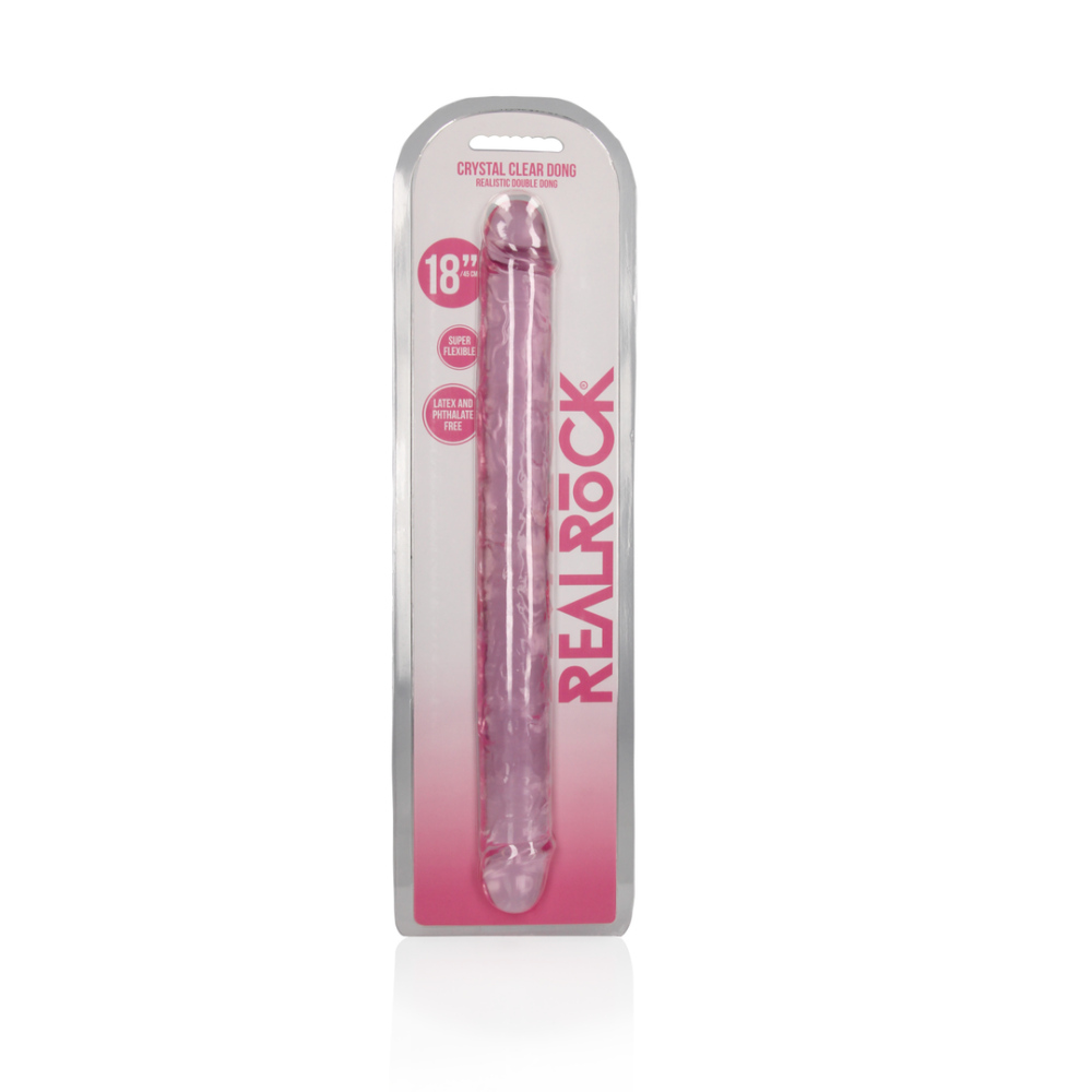 Klaar voor een CRYSTAL CLEAR orgasme? Bereik je ultieme hoogtepunt in stijl met deze prachtig gevormde, heldere dubbele dildo’s. Deze dildo kan dwars door je heen kijken en weet precies hoe je ervan houdt. Deze dildo is geschikt voor anaal en vaginaal gebruik! Precieze stimulatie vergelijkbaar met vingers, geweldig voor heerlijke anale stimulatie en zeker een vriend van de clitoris? Je zult dat alles en meer vinden in deze dildo! Alle REALROCK CRYSTAL CLEAR dildo’s zijn vrij van ftalaten, latex, veilig voor het lichaam en niet-poreus, wat ze gemakkelijk schoon te maken maakt en ze een langere duurzaamheid geeft.Dit model is 17.7” (45 cm) lang, heeft een penetreerbare lengte van 17.7” (45 cm) en een omvang van 1.7” (4,3 cm).