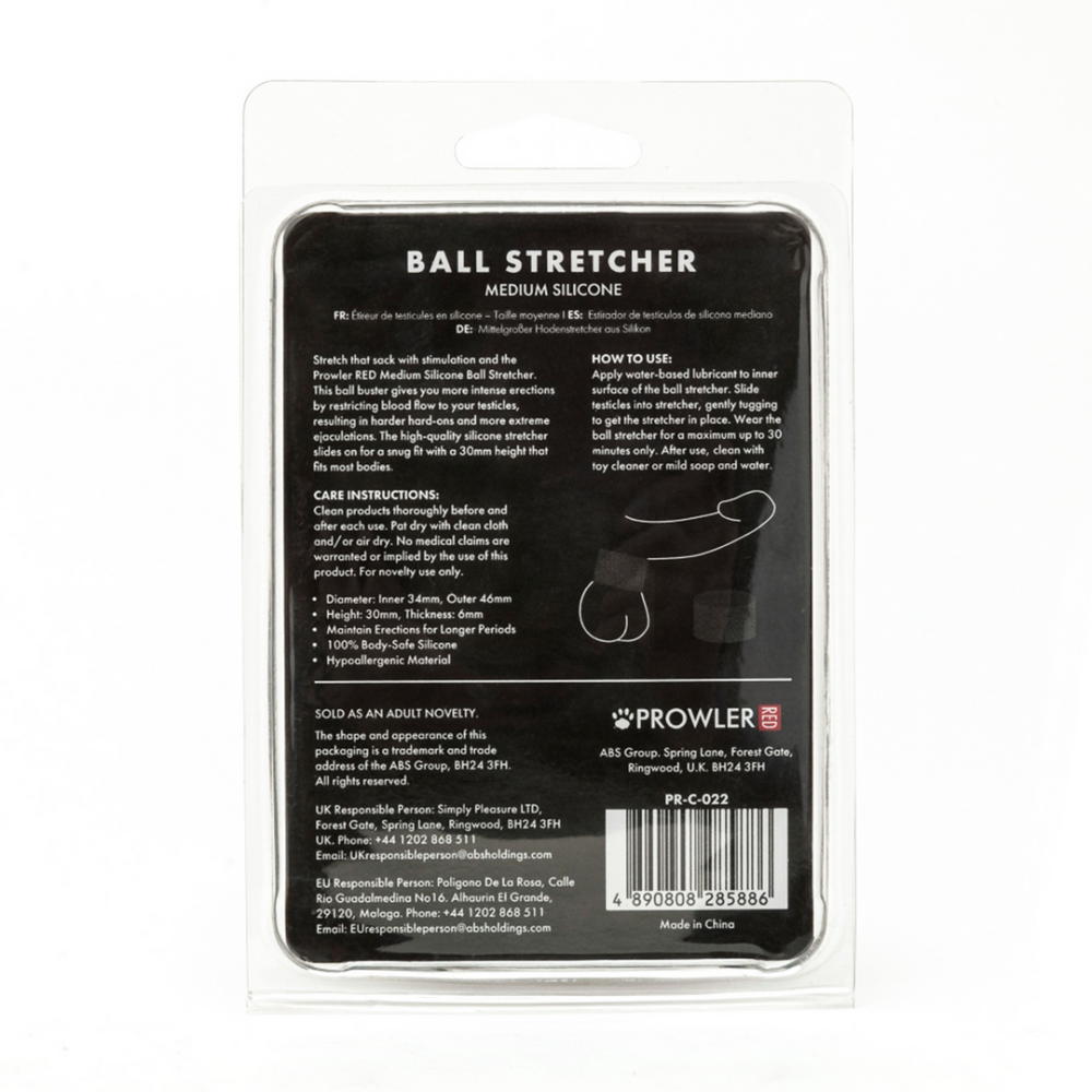 De Prowler RED Medium Silicone Ball Stretcher Binnen diameter: 34mm Buiten diameter: 46mm Hoogte: 30mm Dikte: 6mm