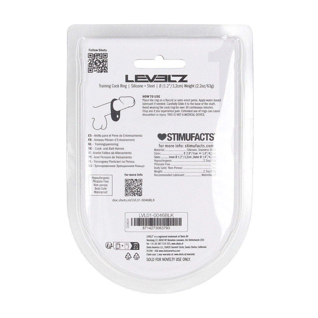 Level up with added intensity. This single weighted cock ring from the LEVELZ collection combines the firm grip of premium silicone with an internal weight for extra pressure and a more grounded, full-bodied feel. Perfect for users who crave that satisfying tug during wear. Non-vibrating, body-safe, and packaged in a sleek clamshell for easy display.
