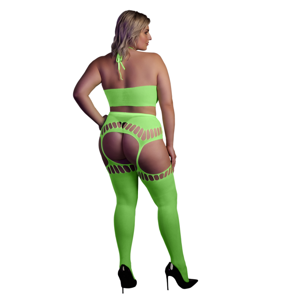 Twee Delige Set met Crop Top en Kousen – Plus Size – Neon Groen