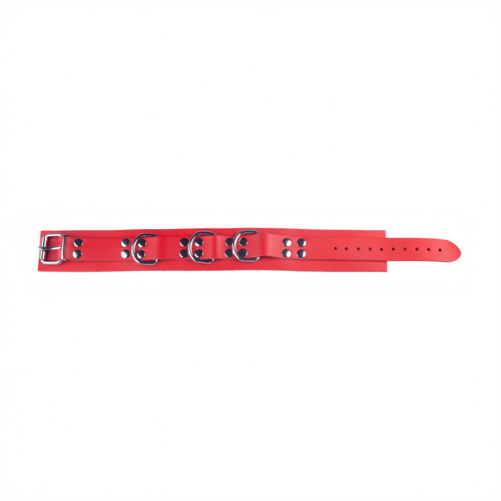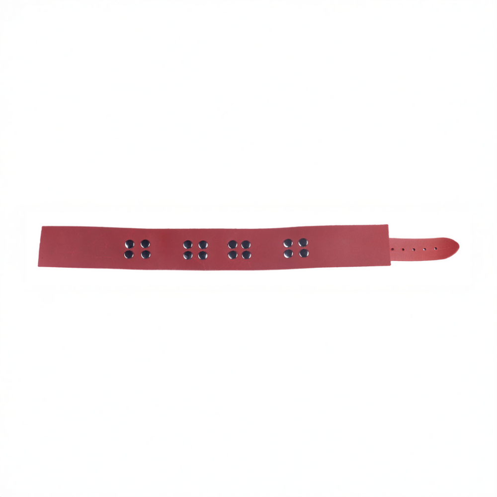 The leather necklace from the Ultra range is the perfect accessory to make style even more SM. It has a width of 5.5 cm and a neck size ranging from 38 to 52 cm. Fasteners, rivets and rings are metal. Genuine cowhide leather. Vegetable tanned. Made in Europe.