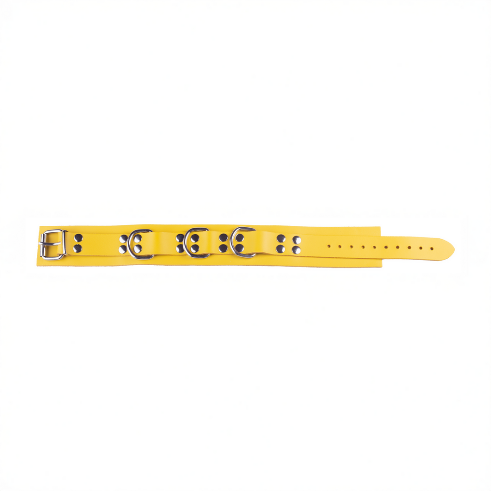 The leather necklace from the Ultra range is the perfect accessory to make style even more SM. It has a width of 5.5 cm and a neck size ranging from 38 to 52 cm. Fasteners, rivets and rings are metal. Genuine cowhide leather. Vegetable tanned. Made in Europe.