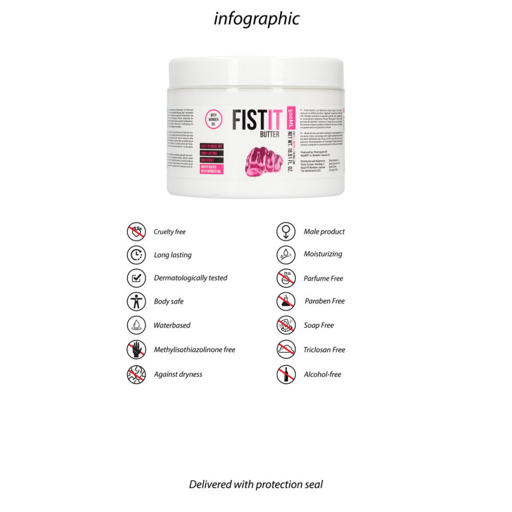 Fistit Boybutter, is een glijmiddel op waterbasis gemaakt met wonderolie hetgeen zorgt voor een langdurige werking. Gebruik zoveel als je wilt en waar je maar wilt. Buiten het bereik van kleine kinderen bewaren. Koel en donker bewaren. Waarschuwing! Dit product bevat olie. Gelieve niet te gebruiken in combinatie met condooms en/of siliconen producten.
