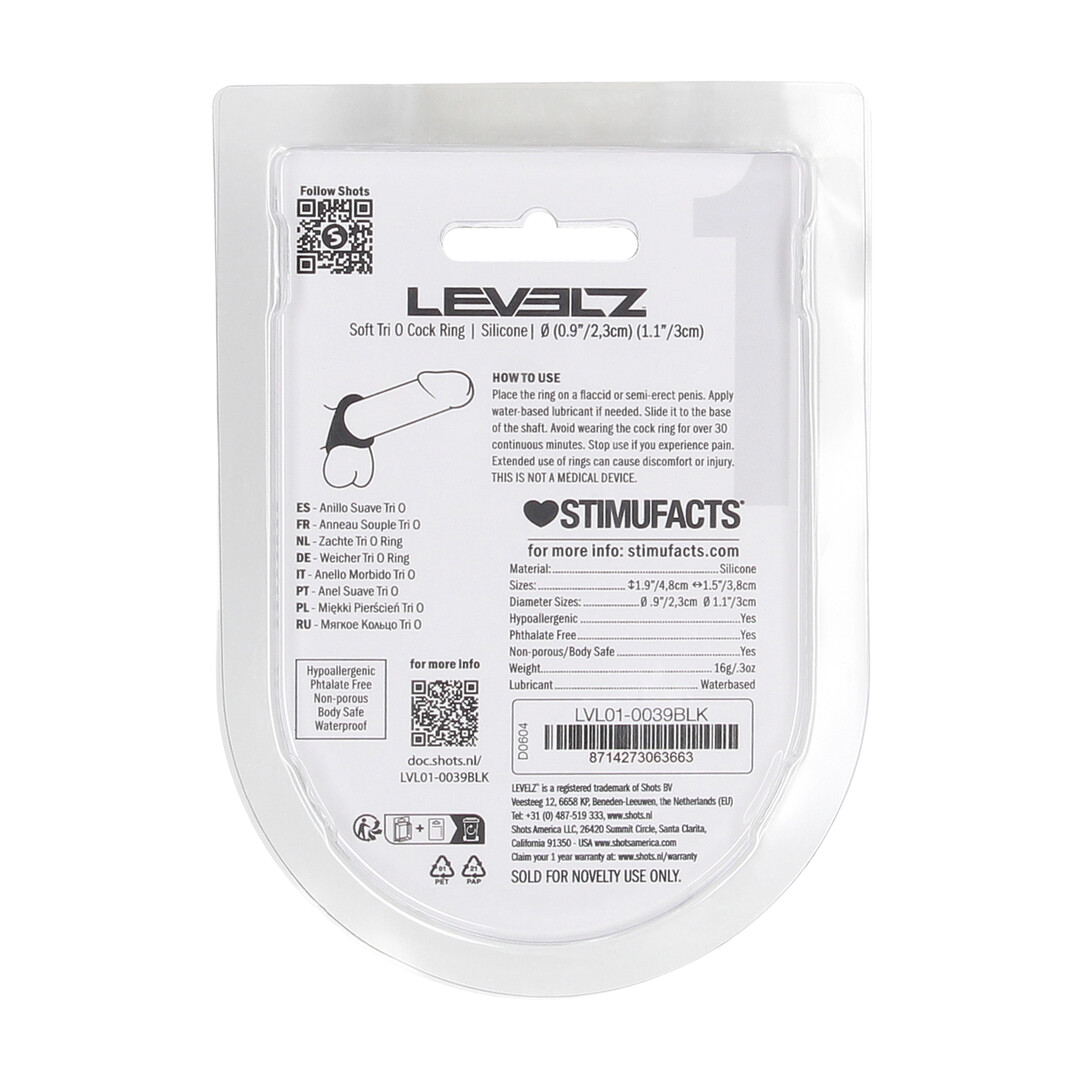 Take full control with the Tri-O Ring from the LEVELZ collection. Featuring three connected loops for shaft, cock balls, and full package support, this non-vibrating ring maximizes pressure and prolongs pleasure. Made from premium, body-safe silicone and packaged in a bold, merchandisable clamshell, the Tri-O is built for players who want more structure and sensation.